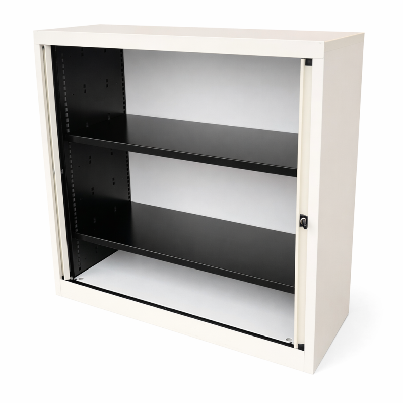 Armoire basse grise à rideaux 80x45x75cm