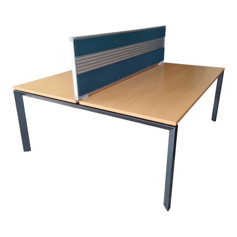Bureau bench plateau bois et pieds en métal gris 180x160x72cm STEELCASE