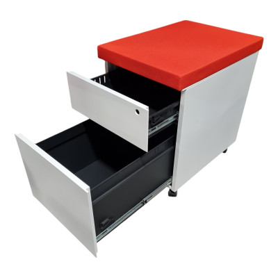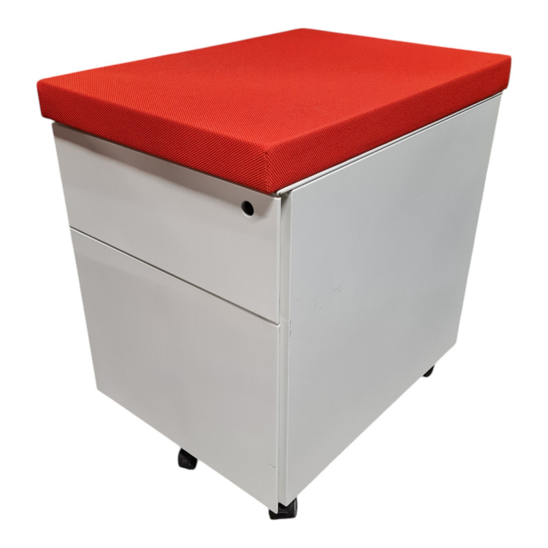 Caisson de bureau blanc 2 tiroirs avec coussin orange état déclassé