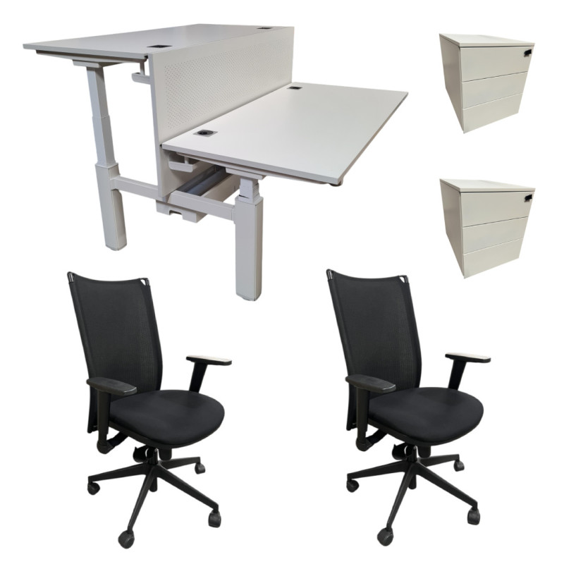 Bureau Bench électrique avec 2 fauteuils et 2 caissons