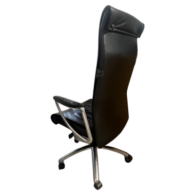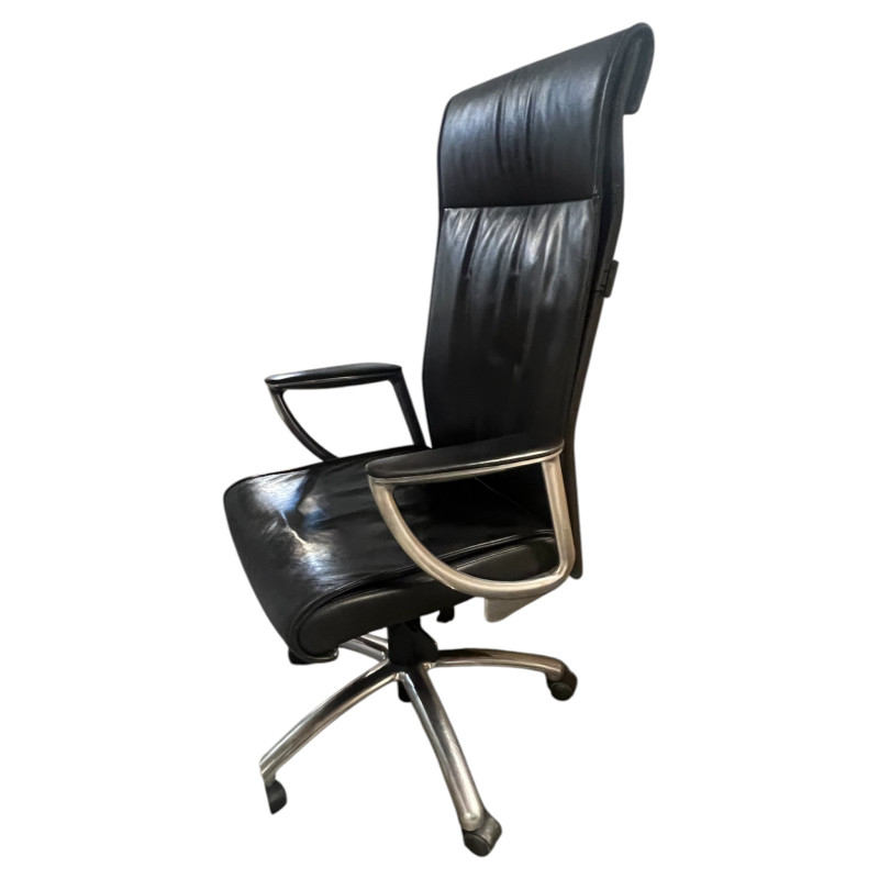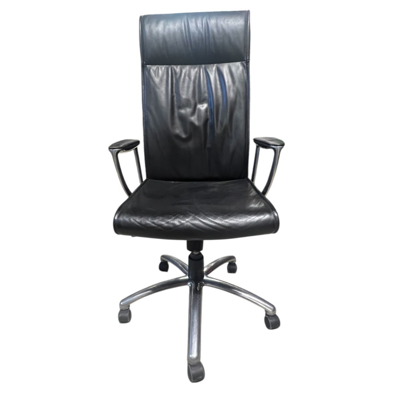 Fauteuil de bureau en cuir noir armature en chrome