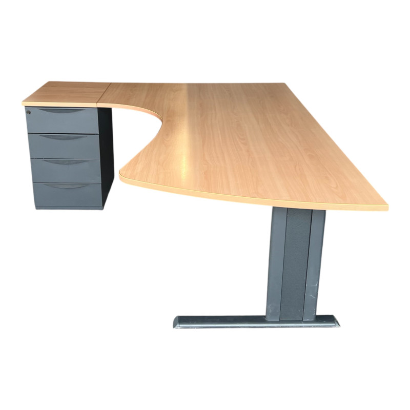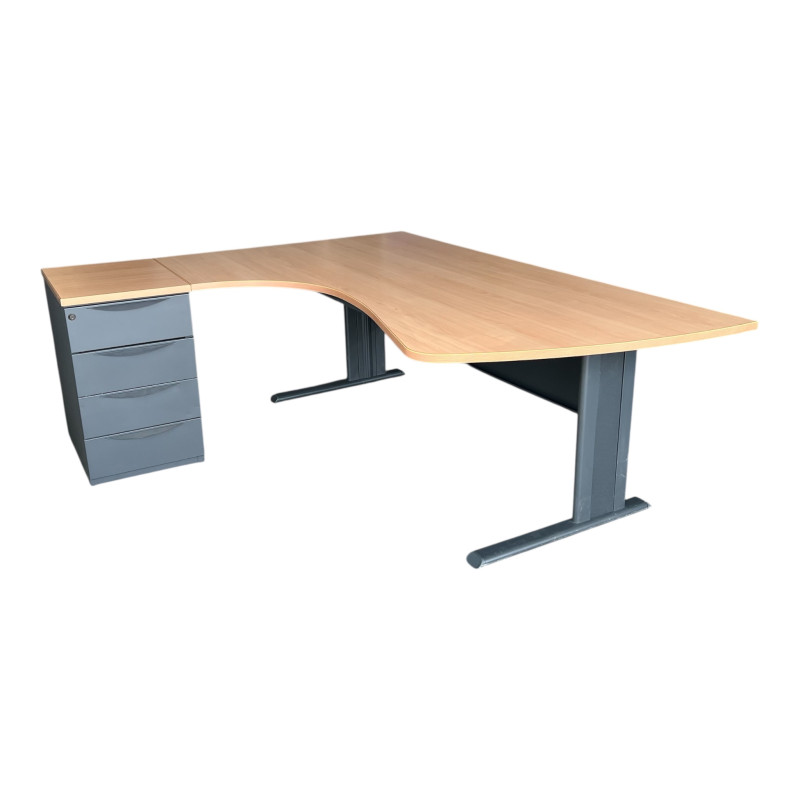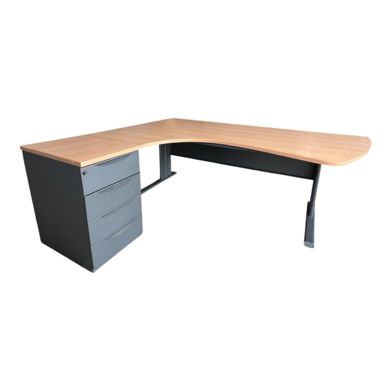 Bureau d'angle en bois avec caisson 3 tiroirs 200x143cm