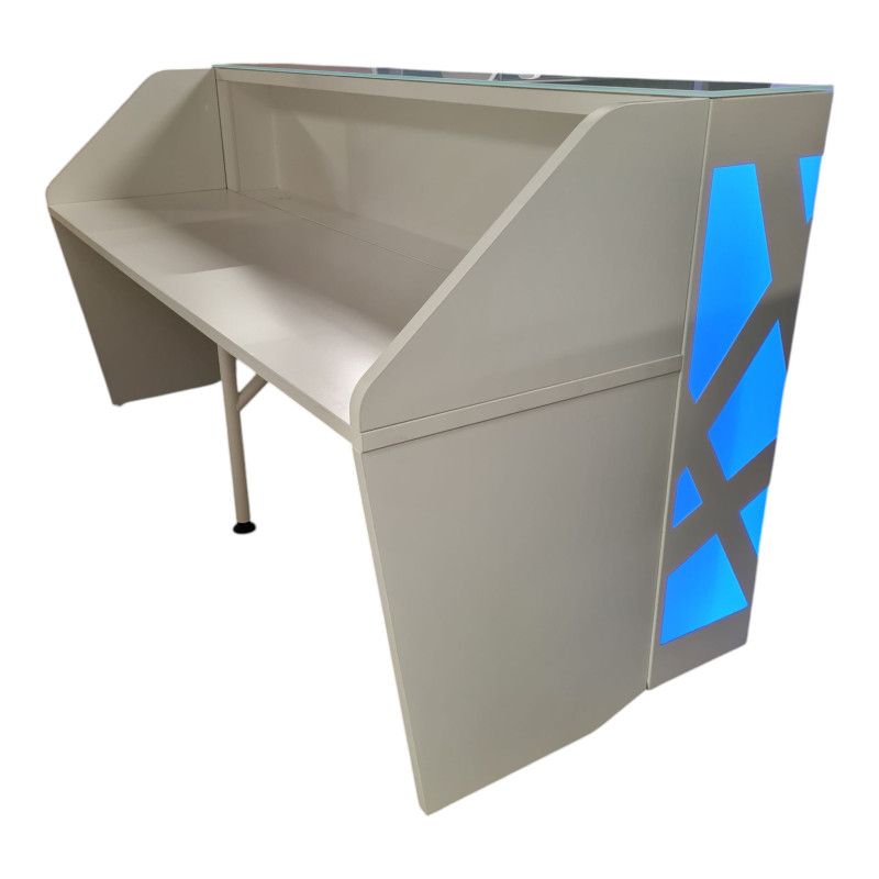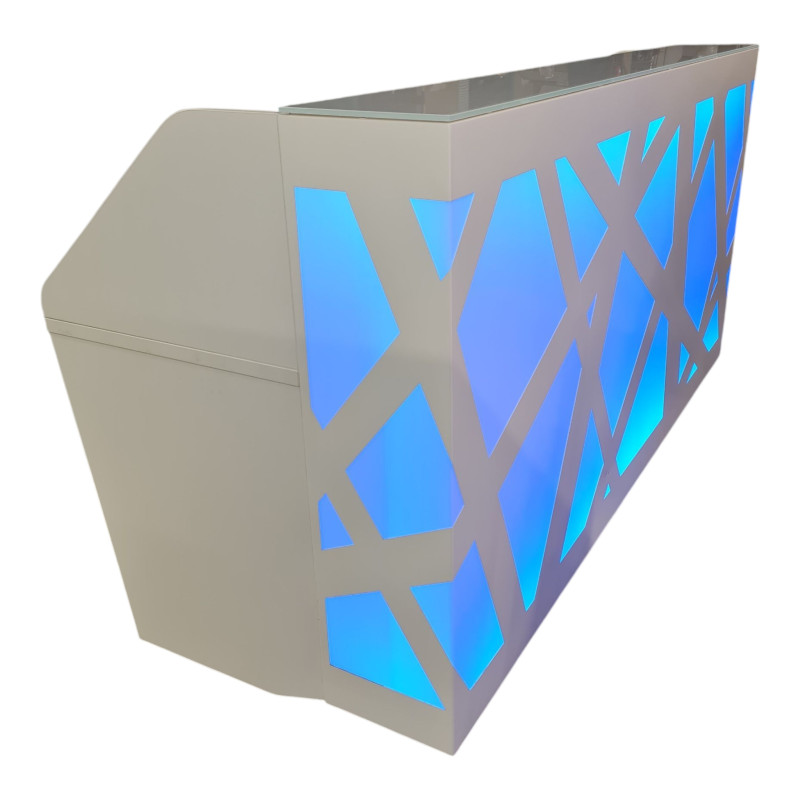 Banque d'accueil blanche Zig-Zag lumineuse bleue